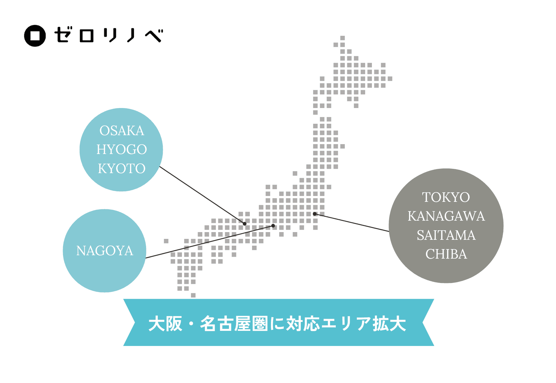 という多数のお客様のお問い合わせを受け、ゼロリノベでは基本エリア(東京・神奈川・埼玉・千葉)以外も対応エリアを拡大いたしました。